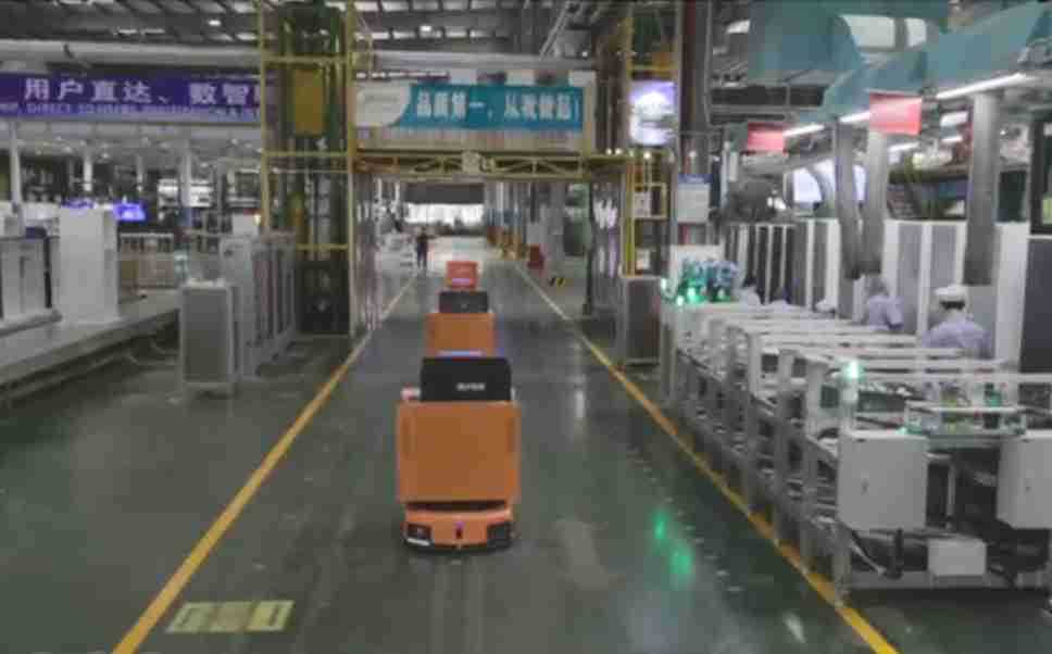 为车载冰箱物流配送打造的智能解决方案,,包含产中物流通过潜伏举升AMR搬运至线边,,产后成品物流智能仓储,,,流程包含产中物流智能齐套入库,,线边安灯叫料AMR智能配送至线边,,成品入库、、出库,,,,通过无人堆高车机器人,,,,智能仓储管理替代人工作业管理,,,,实现更高存储、、、、更高效率、、、更具柔性化的解决方案。。